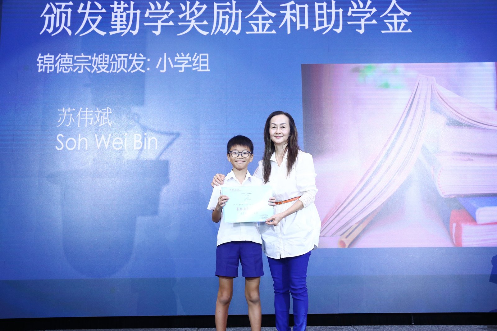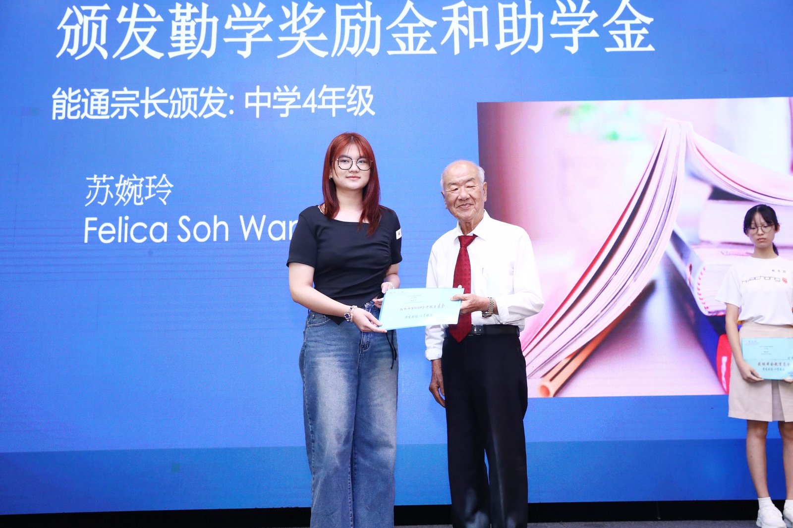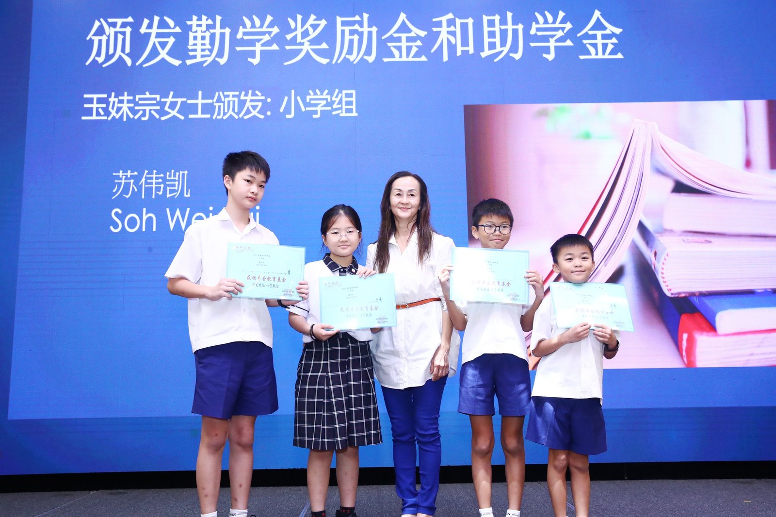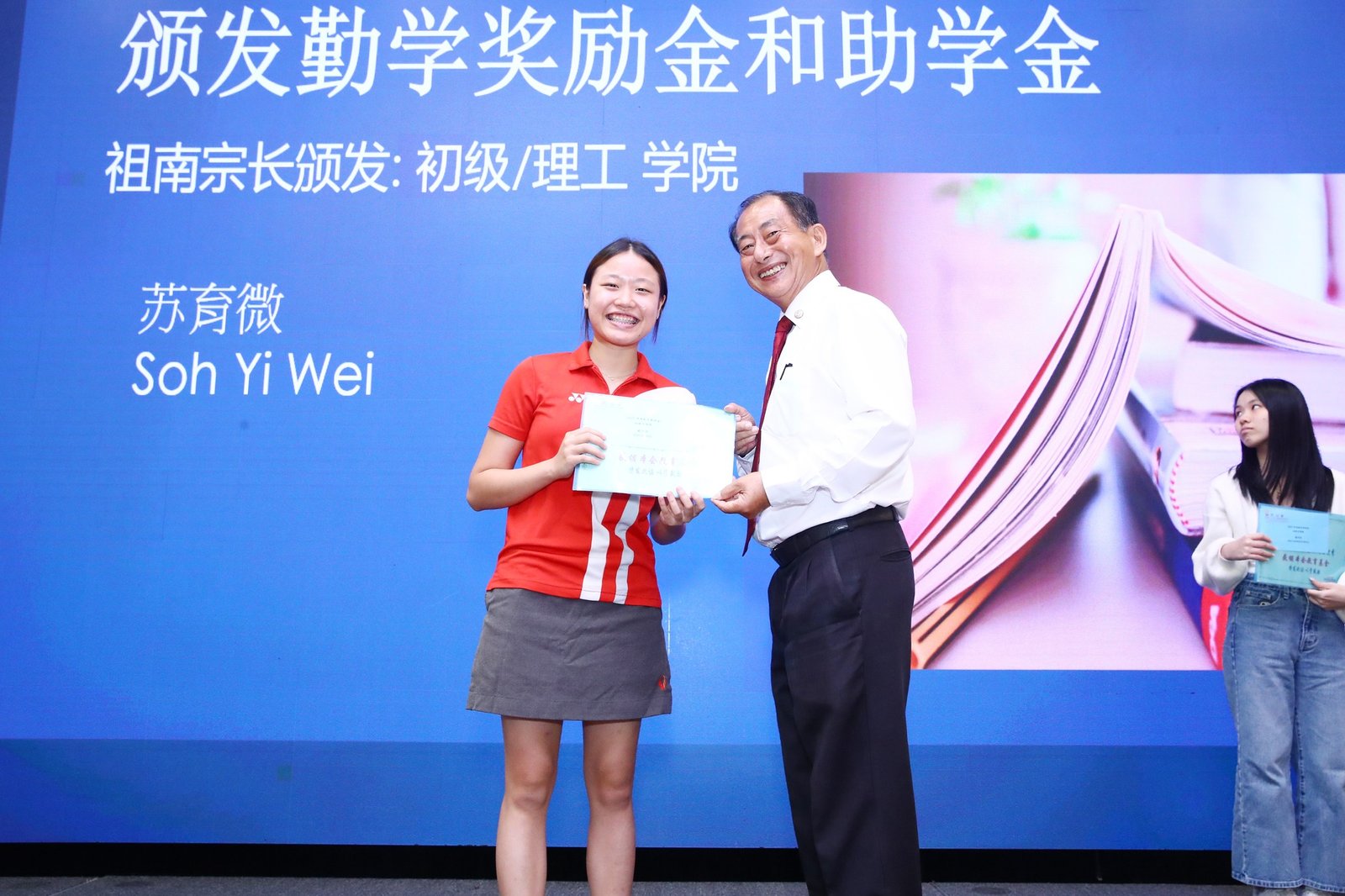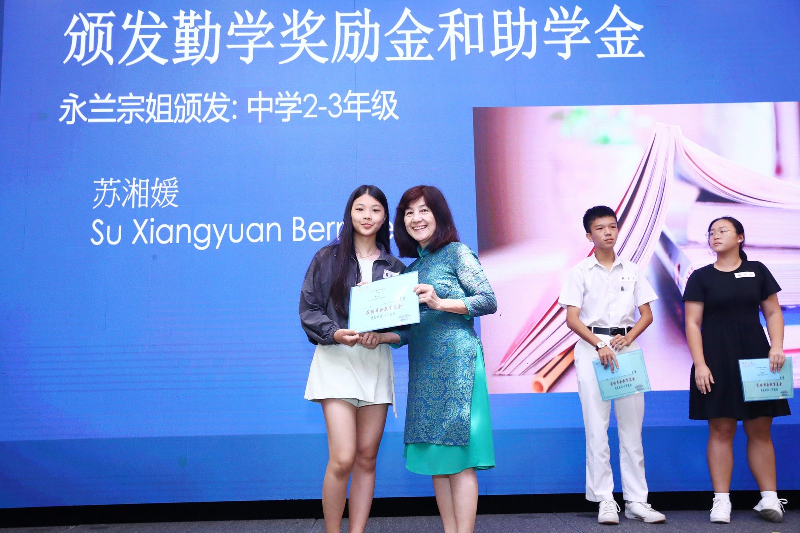 Subsequently, the ‘Scholarship and Bursary Awards for Diligent Descendants’ ceremony commenced. This year saw 23 awards presented, spanning primary school through polytechnic levels. Awards were conferred upon students in each category by Madam Jin De, Madam Yu Mei, Madam Yong Lan, Elder Neng Tong, and Elder Zu Nan respectively.