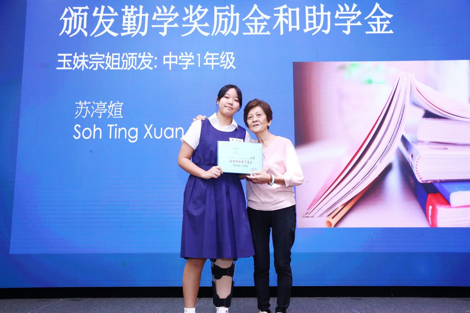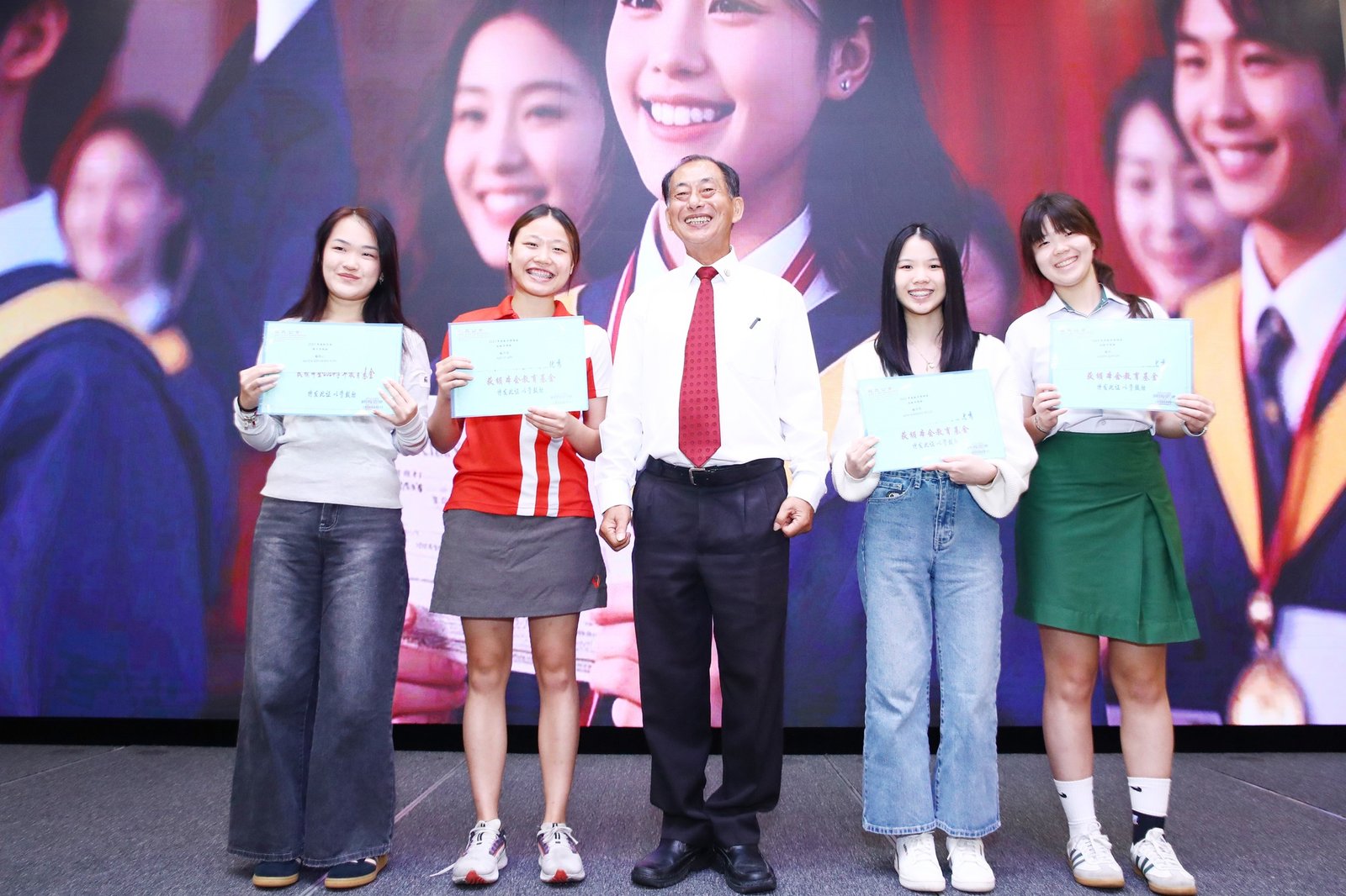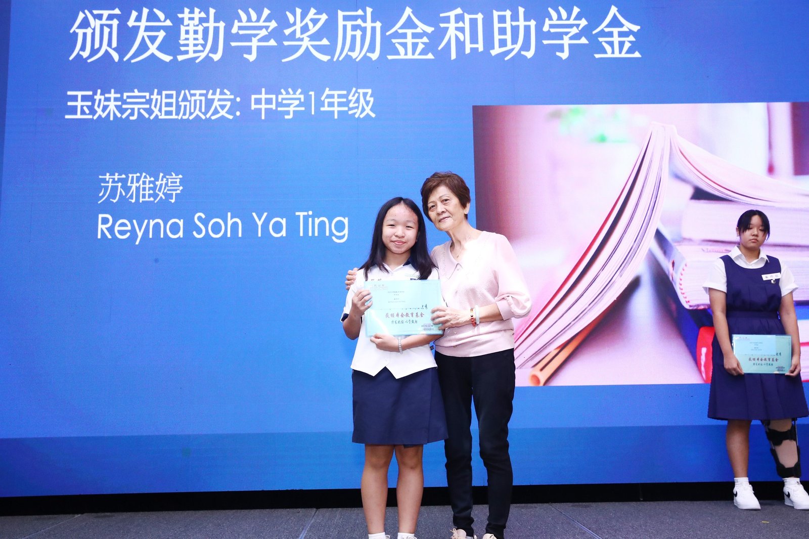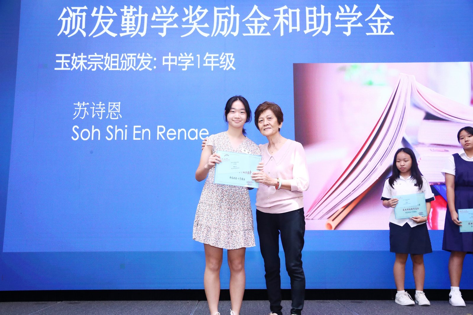 Subsequently, the ‘Scholarship and Bursary Awards for Diligent Descendants’ ceremony commenced. This year saw 23 awards presented, spanning primary school through polytechnic levels. Awards were conferred upon students in each category by Madam Jin De, Madam Yu Mei, Madam Yong Lan, Elder Neng Tong, and Elder Zu Nan respectively.