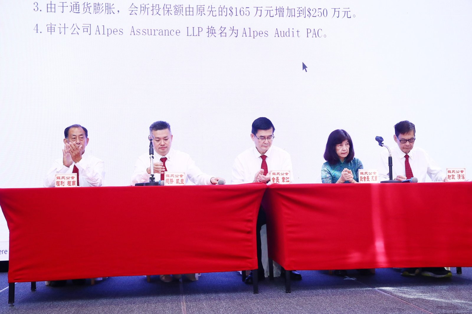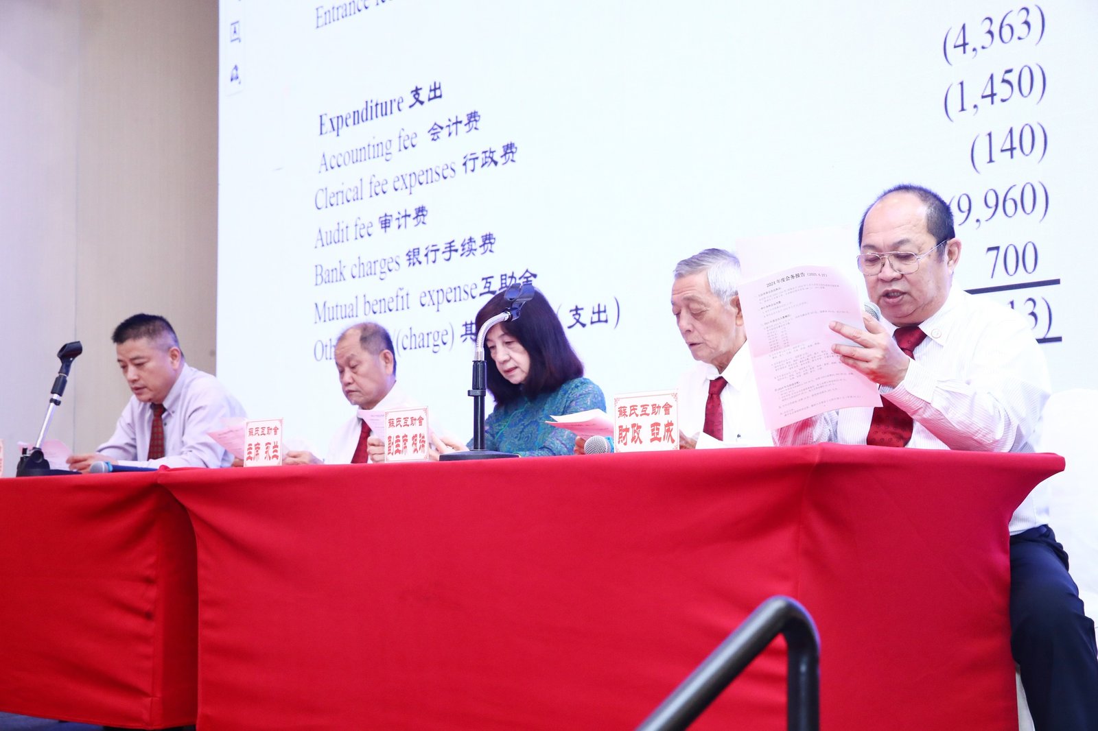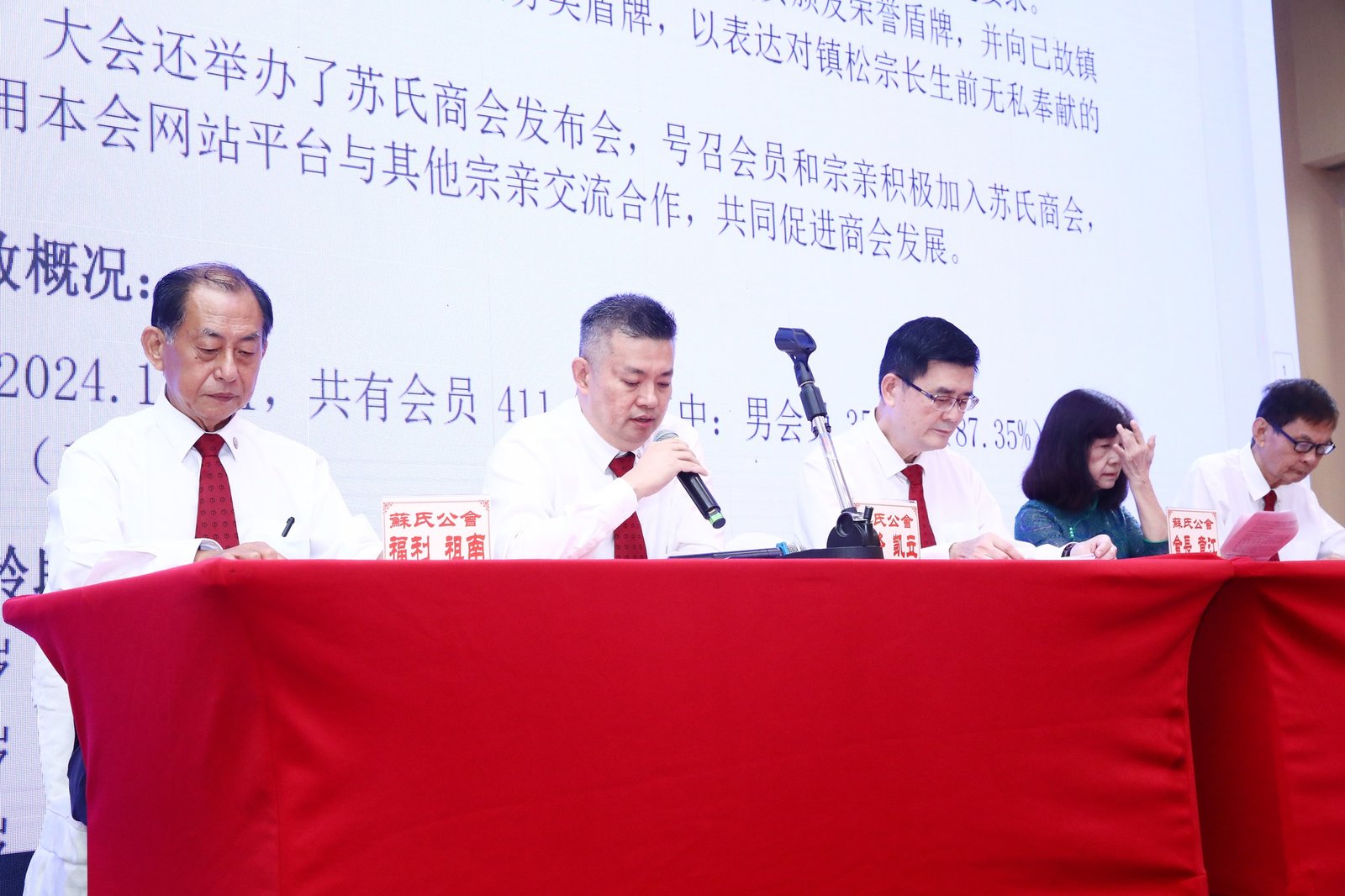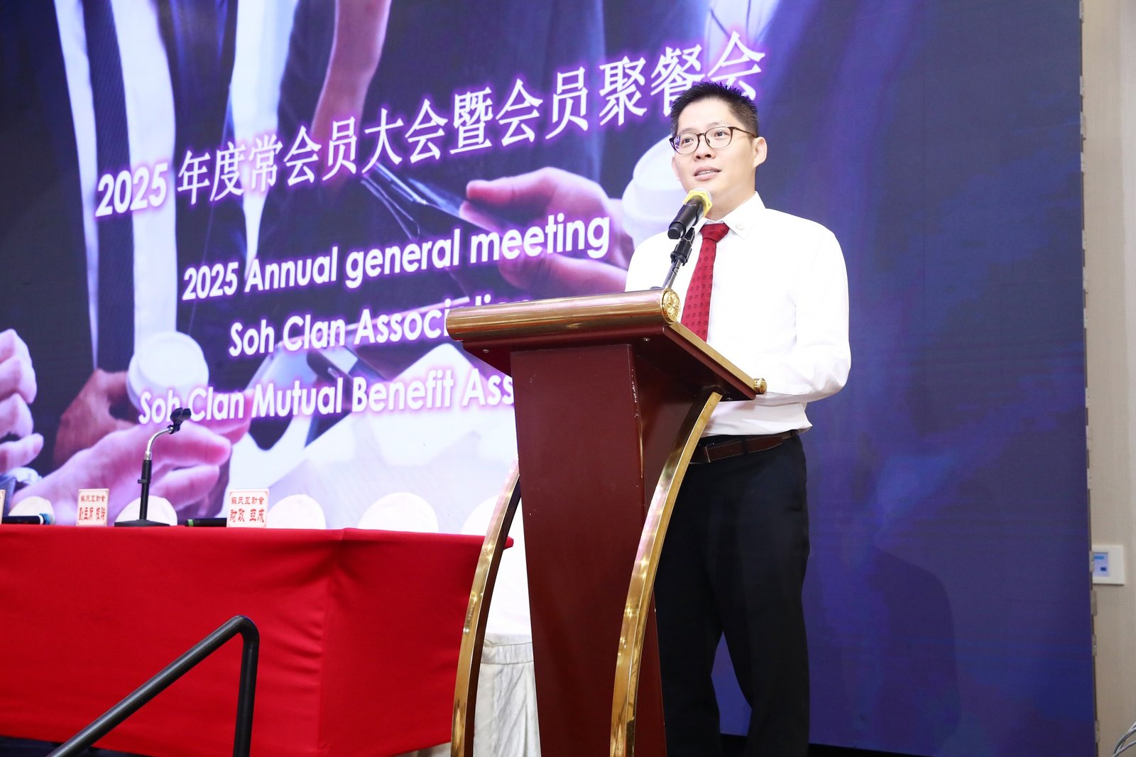 The proceedings were chaired by Mr Chao Yuan. The Soh Clan Mutual Benefit Association's Annual General Meeting was presided over by Chairperson Ms Yong Lan, with Vice-Chairpersons Mr Gen Rui and Ms Zu Yun, Secretary Mr Chong You, and Treasurer Mr Ya Cheng in attendance. In her address, Ms Yong Lan expressed gratitude for the clan members' support, reviewed the association's development, and emphasized the importance of mutual aid and clan cohesion. The assembly deliberated and approved the 2024 annual meeting resolutions, reviewed administrative and financial reports, and discussed member proposals.